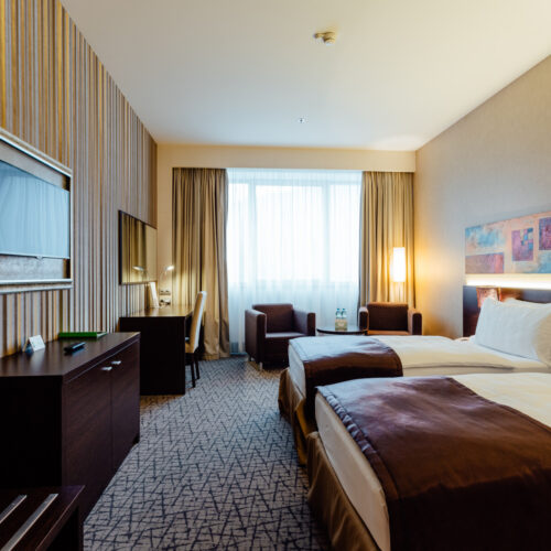 For an additional fee, you can relax in the hotel’s Spanorama wellness center, located on the 10th floor, or start the day with a rich buffet breakfast in the hotel restaurant.