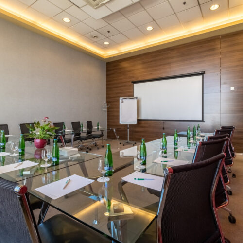 Miestnosť OMEGA s rozlohou 42m2 je vhodná na malé pracovné stretnutia, porady, či pohovory. Príjemnú atmosféru dolaďuje dostupnosť denného svetla.